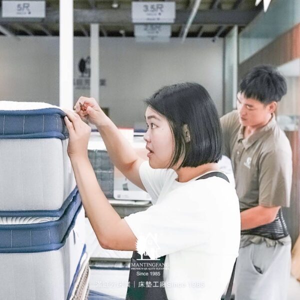 - 品檢與複檢:從半成品到成品出廠前的每一道工序全數品檢,確保每張床墊內材及外觀正確無誤。